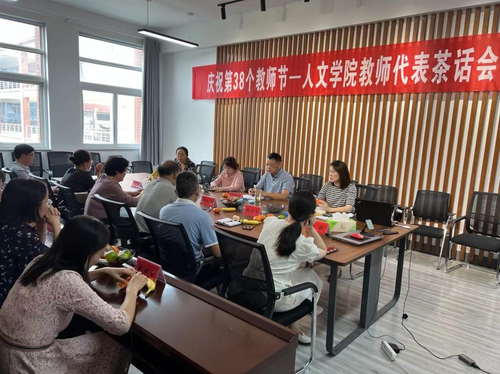9月8日下午,在第38个教师节即将到来之际,人文学院以“迎接党的二十大、培根铸魂育新人”为主题在仁和楼A302举办教师代表茶话会,党总支书记何登溢、院长周晓燕、副院长陶文俊参加座谈,荣休老教师、专业系主任、新引进博士、新入职辅导员和优秀教师代表近20人参加,党总支副书记、分工会主席姚爱华主持。