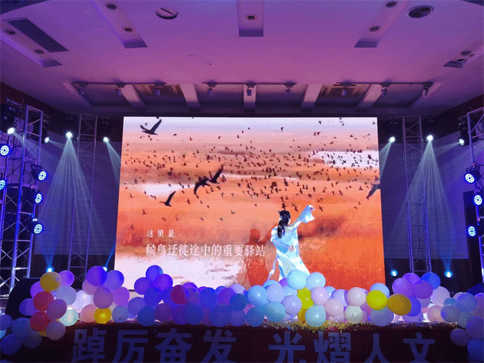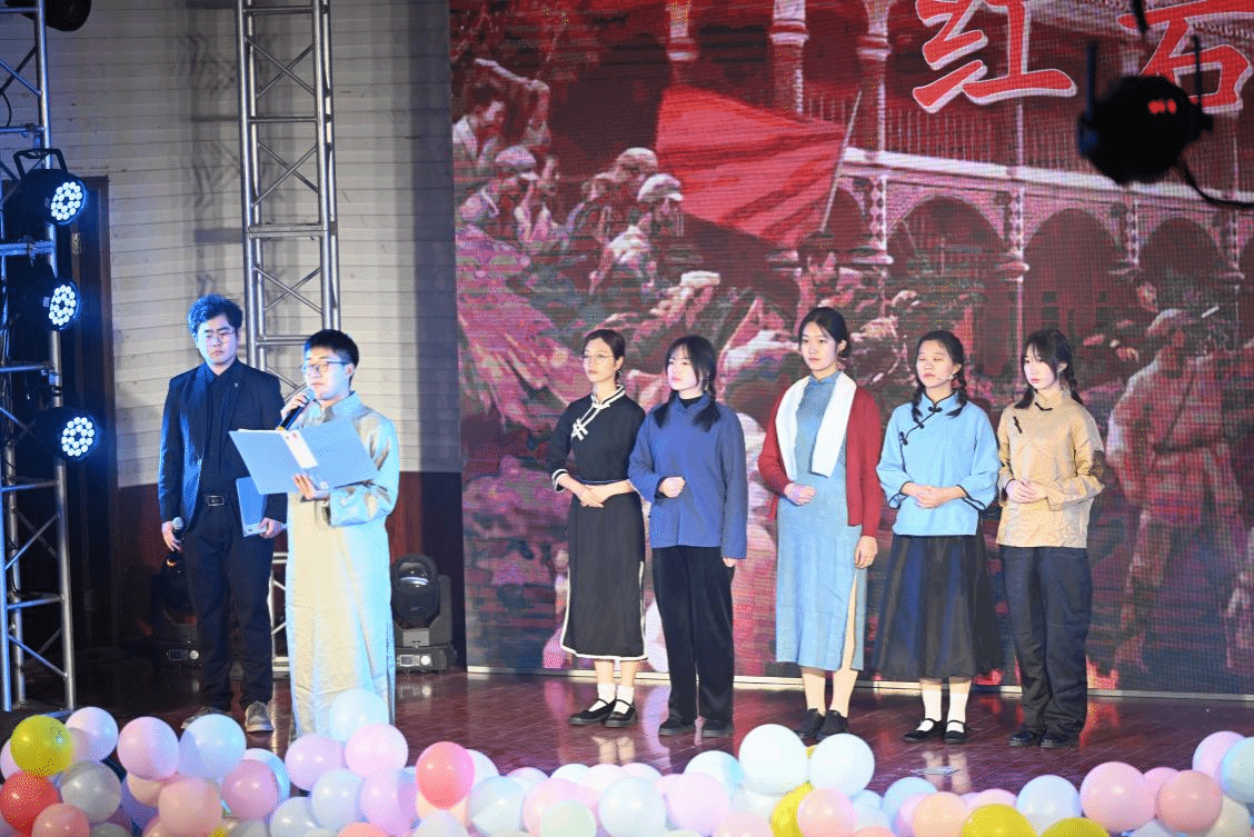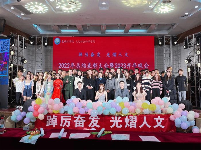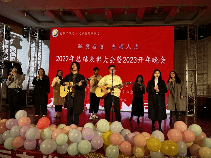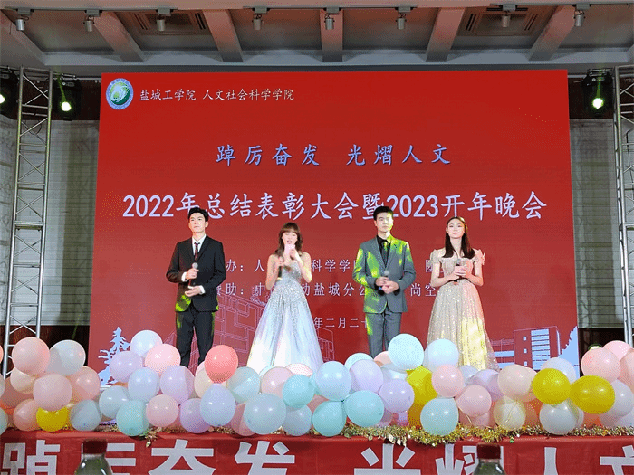 B旅游223夏沁同学带来热情洋溢的开场舞《burning》拉开了晚会的序幕。秋雨社同学们带来的正剧《红岩》引领观众回到了那个炮火连天、投身革命的峥嵘岁月。由王萍等同学带来的舞蹈《失恋阵线联盟》以欢快音乐与动作点燃了全场的气氛。刘嘉欣等同学用甜美的嗓音为我们带来合唱《心墙》。赵俊峰、邢豪、仲梓玮和凌韩玺同学带来的歌曲串烧《情非得已》、《忽然之间》、《乌梅子酱》、《你曾是少年》引起呼声阵阵。由吴群悦及其搭档带来的配音秀《学习的诱惑》洋洋盈耳,给台下的同学带来一场听觉盛宴。接着,小游戏《甄嬛传》台词接龙抢答引来同学们踊跃参与,全场气氛愉悦。欢乐的游戏时间结束后,宋倩倩同学带来了热情洋溢的舞蹈《solo》。女生合唱《决爱》深情动人,学校秋雨社带来的相声《诗词大会》更是让不少同学捧腹大笑。邓妍同学带来的舞蹈《潮生复水谣》引人入胜,让观众感受到了盐城湿地丹顶鹤的的优雅。刘瑞等同学带来的朗诵《青春献礼二十大》向我们展示了青年蓬勃的朝气与自信。专兼职辅导员代表和学生代表合唱《New Boy》将晚会推向高潮。最后,合唱《我爱你中国》表达了青年大学生乘着时代的春风,在以中国式现代化全面推进中华民族伟大复兴的新征程上续写新的华彩篇章的雄心壮志。