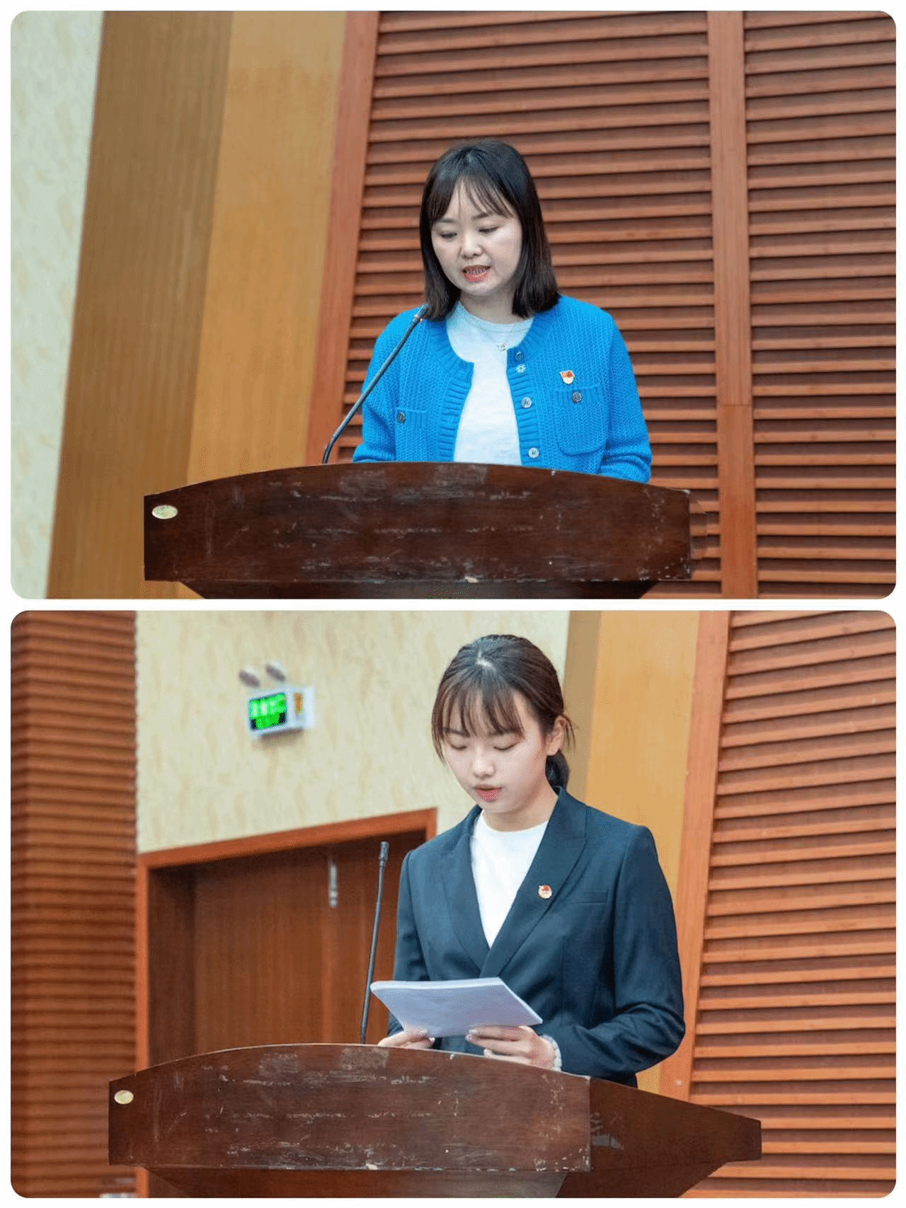 教师代表、盐城市铁军文化研究智库成员、马克思主义学院副院长赵迎华发言。她详细解读了铁军、叶挺部队、铁的堡垒这三面“战旗”,号召大家将铁军精神内化于心、外化于行。学生代表、人文学院学生会主席蔡佳彤以《做新时代铁军精神的传承者》为题作了主旨发言。