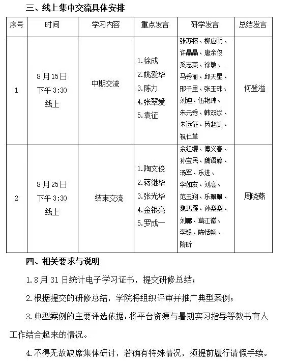 为满足教师暑期提升教育教学能力的需要,推动学院高质量发展,结合江苏省教育厅和学校关于开展2022年暑期教师研修相关工作的有关精神,8月15日下午,人文学院举办线上暑期教师研修中期交流活动。何登溢书记主持,周晓燕院长及学院全体教师参加交流。