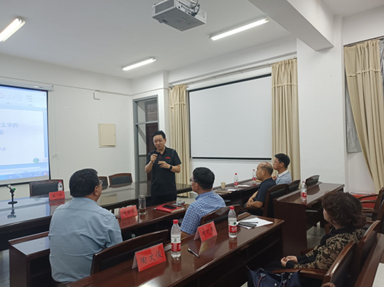 此次学术交流会分两个部分进行,一是邀请了盐城师范学院教务处处长岳峰教授作了“国家社科基金申报讲座”。岳教授从选题维度、论证维度、具体选题时常见的几种错误及申报书的论证语言使用等方面做了详细报告,又通过范例分析生动形象的使老师们了解了什么是好的国基申报材料。二是三位教师做了“当下文学中的地域书写”主题发言。中文系主任蒋继华以“文学性与媒介时代的文学”为主题,探讨了媒介与文学的互渗以及媒介生产视域下文学存在的两种论调,并反思了文学性与媒介的异质耦合。柳应明老师作了“当下文学中的新农村建设书写”的主题报告,梳理了新农村书写背景及历史,并指出了当下文学中新农村书写的不足,引发教师思考。乐进老师分享了“串场河流域民间文学的特点和价值”,以地名传说、人物故事、革命歌谣等多方面为切入点,使在座老师们感受到了民间文学研究的意义所在。岳峰教授在点评中首先点赞了三位老师认真踏实的研究态度,并给与了诚恳的建议与意见,使听众受益匪浅。