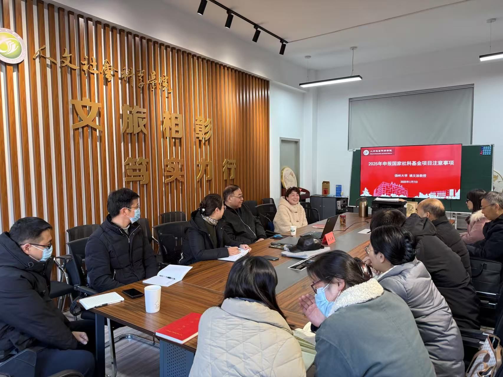 为进一步推进我院2025年度国家社科基金项目申报工作,1月7日上午,人文学院在仁和楼A302会议室举办2025年国家社科基金项目申报专题讲座。本次讲座邀请了扬州大学文学院姚文放教授主讲,人文学院院长周晓燕出席会议,副院长陶文俊主持会议。学院相关教师参会。