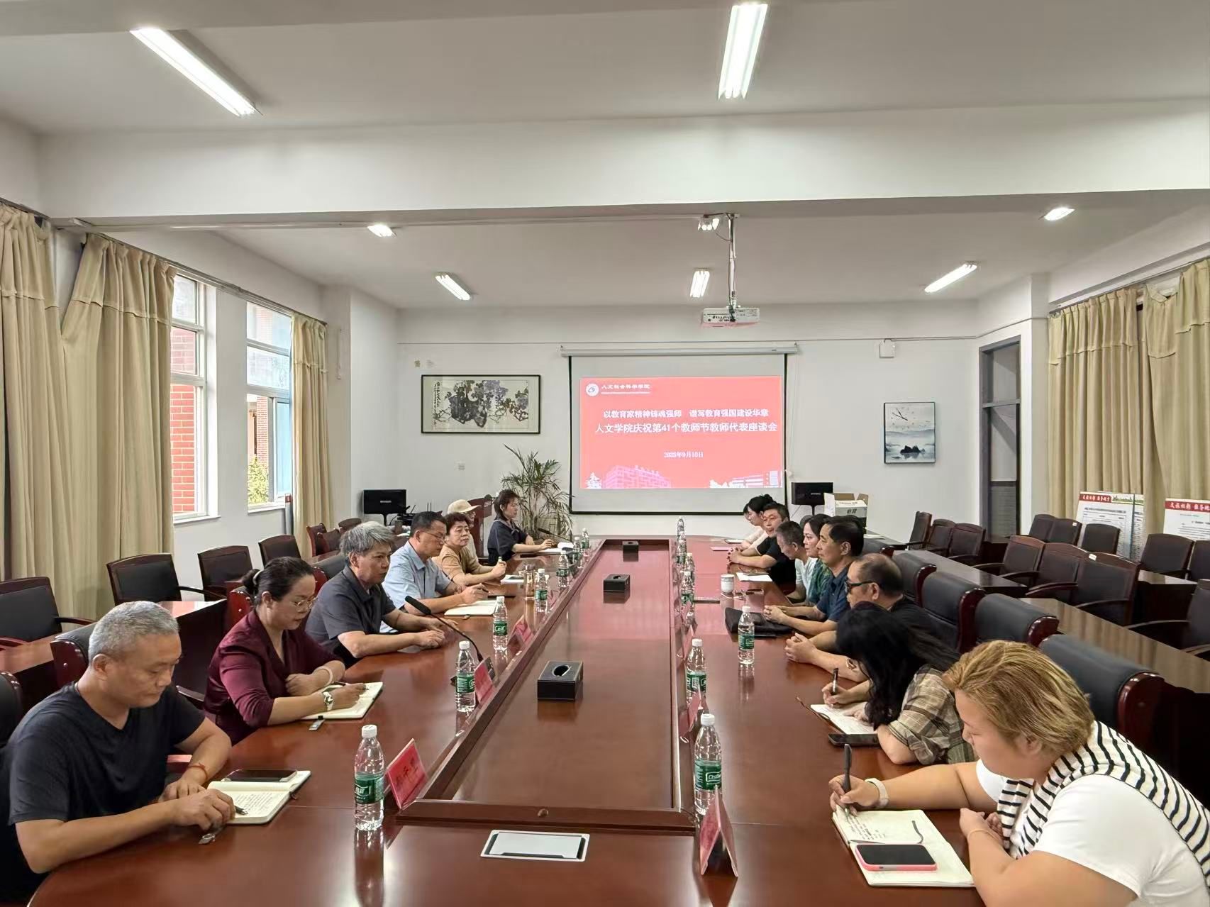 金秋送爽,天朗气清。9月10日下午,人文学院在仁和楼A304会议室组织召开“以教育家精神铸魂强师,谱写教育强国建设华章”为主题的庆祝第41个教师节教师代表座谈会,特邀人文学院原院长衣传华、原副院长徐成座谈指导,学院党总支书记何登溢、院长周晓燕、副院长陶文俊、学术助理邢千里及部分教师代表参加交流,会议由学院党总支副书记姚爱华主持。