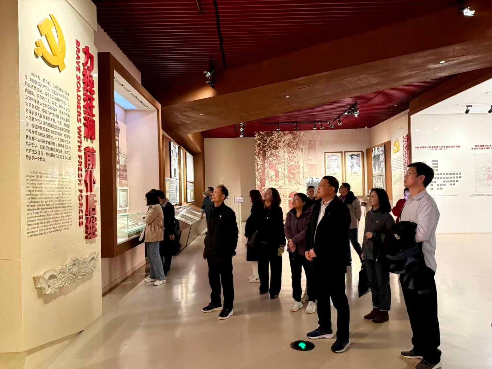 凭吊仪式后,学院一行步入雨花台烈士纪念馆进行参观学习。在讲解员深情讲述与引导下,老师们透过一份份珍贵的历史文物、一张张定格历史的照片、一幕幕还原历史的场景,系统了解了邓中夏、恽代英等雨花英烈可歌可泣的革命事迹,深刻感受到革命先烈们在血雨腥风的严峻考验面前,所展现出的坚定信仰,以及视死如归的浩然正气和炽烈的家国情怀。参观过程中,老师们常常驻足凝视,被革命先烈为理想信念甘洒热血的伟大精神深深震撼。