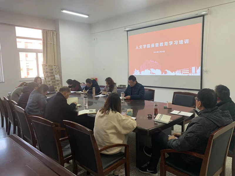 11月24日下午,人文学院在仁和楼A304会议室开展保密教育学习培训会,学院党总支书记何登溢主持,理论学习中心组全体成员参加。