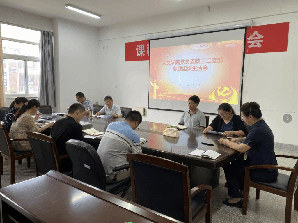 7月7日下午,人文社会科学学院教工一支部和教工二支部分别在仁和楼A304和A306召开了党史学习专题组织生活会。支部书记蒋继华和张玉玮主持会议,学院全体党员教师参加, 校党史学习教育第一指导组组长张建中书记和副组长花爱军副部长列席会议。