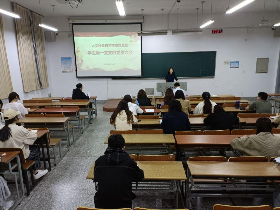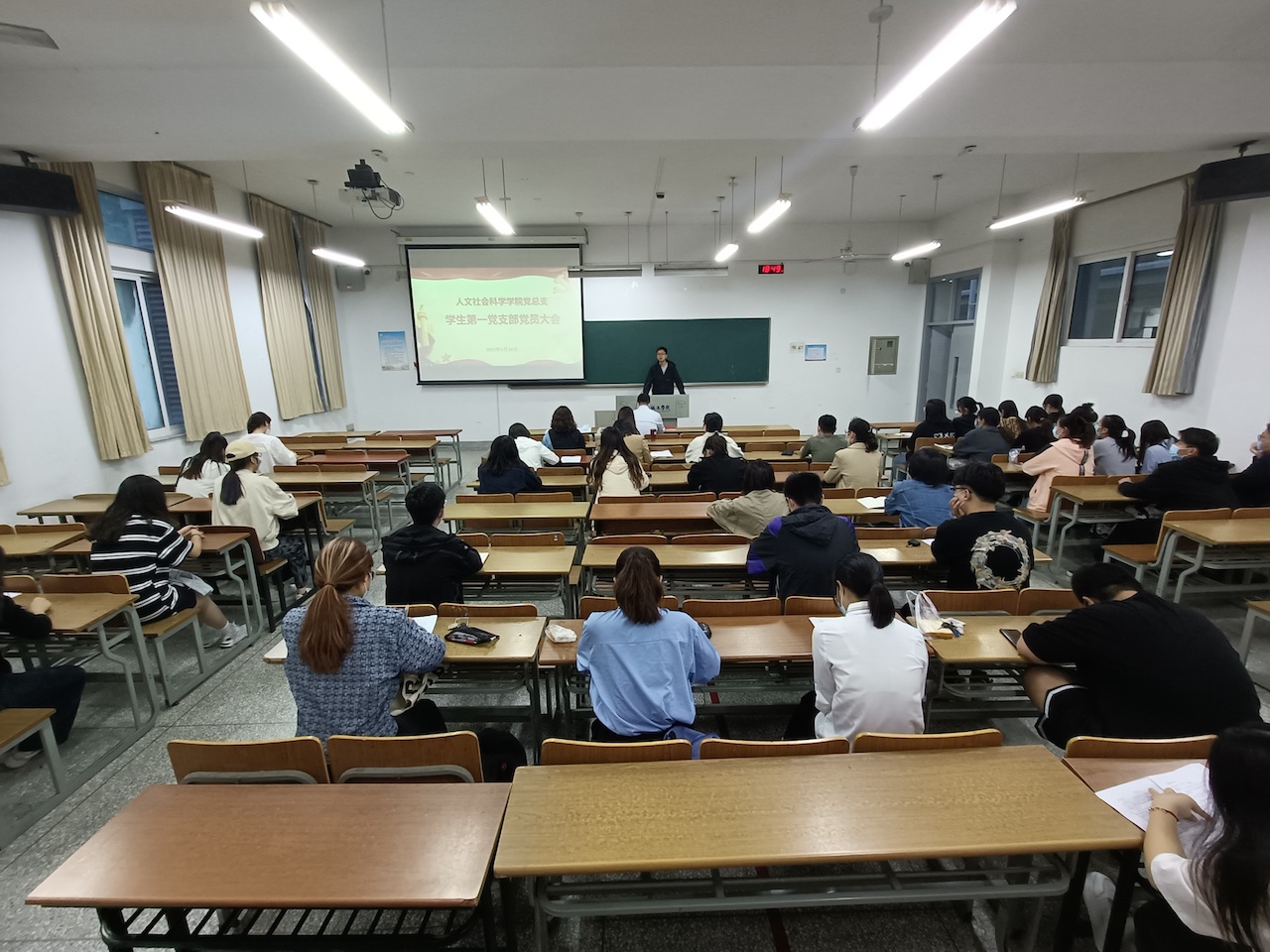 5月24日晚,人文学院在希望大道校区博学楼1J1A209教室召开学生支部大会,讨论发展党员和预备党员转正工作,会议采用线上线下相结合的方式进行。院党总支书记何登溢、副书记姚爱华出席指导会议,全体支委成员、学生党员、党员发展对象参加会议,学生支部书记邱天星主持会议。