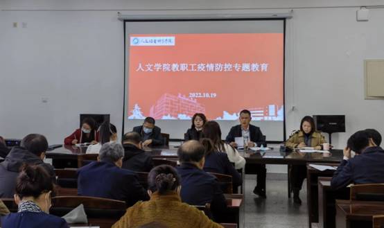 10月19日下午,在希望大道校区仁和楼A304会议室,人文学院召开教职工疫情防控专题教育。会议由学院党总支书记何登溢主持,学院全体教职工参加。