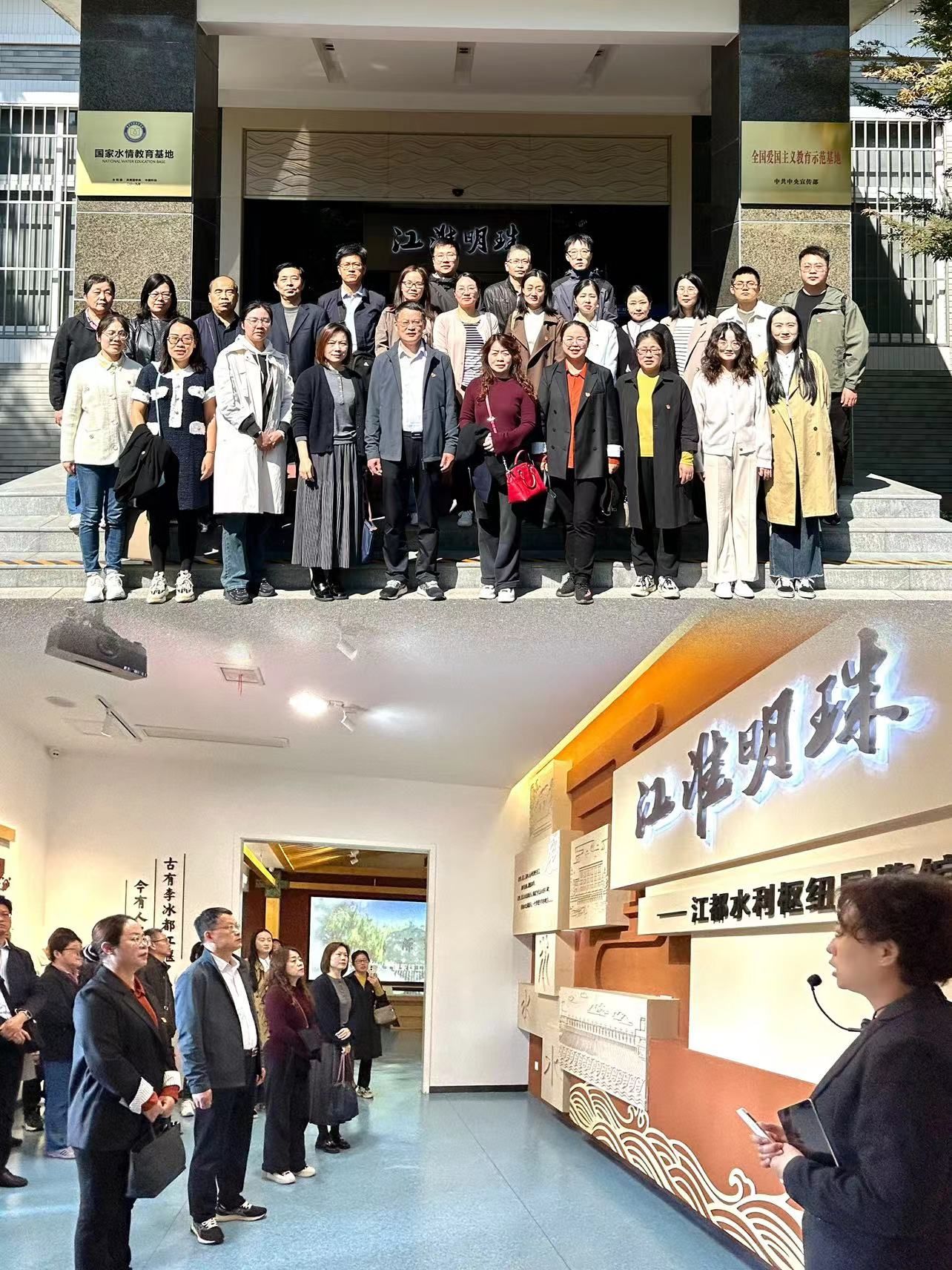 全院一行沿着习近平总书记考察路线来到江都水利枢纽。作为目前我国规模最大的电力排灌工程、亚洲最大的泵站枢纽,它既是江苏省“江水北调”的龙头,也是国家“南水北调”东线工程的源头。大家通过参观南水北调东线工程数据中心和“江淮明珠”展览馆,全方位地了解了南水北调的工程规划,领会了南水北调工程“功在当代,利在千秋”的深刻内涵,在感受历久弥新的“引江精神”魅力中增进了爱国情感。
