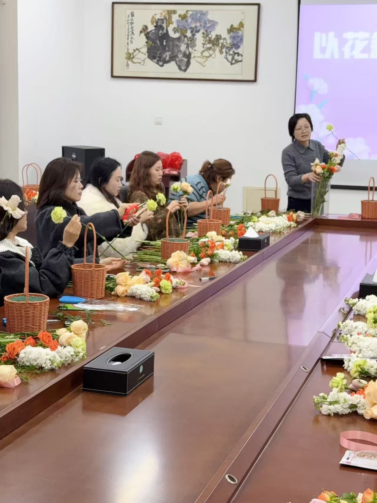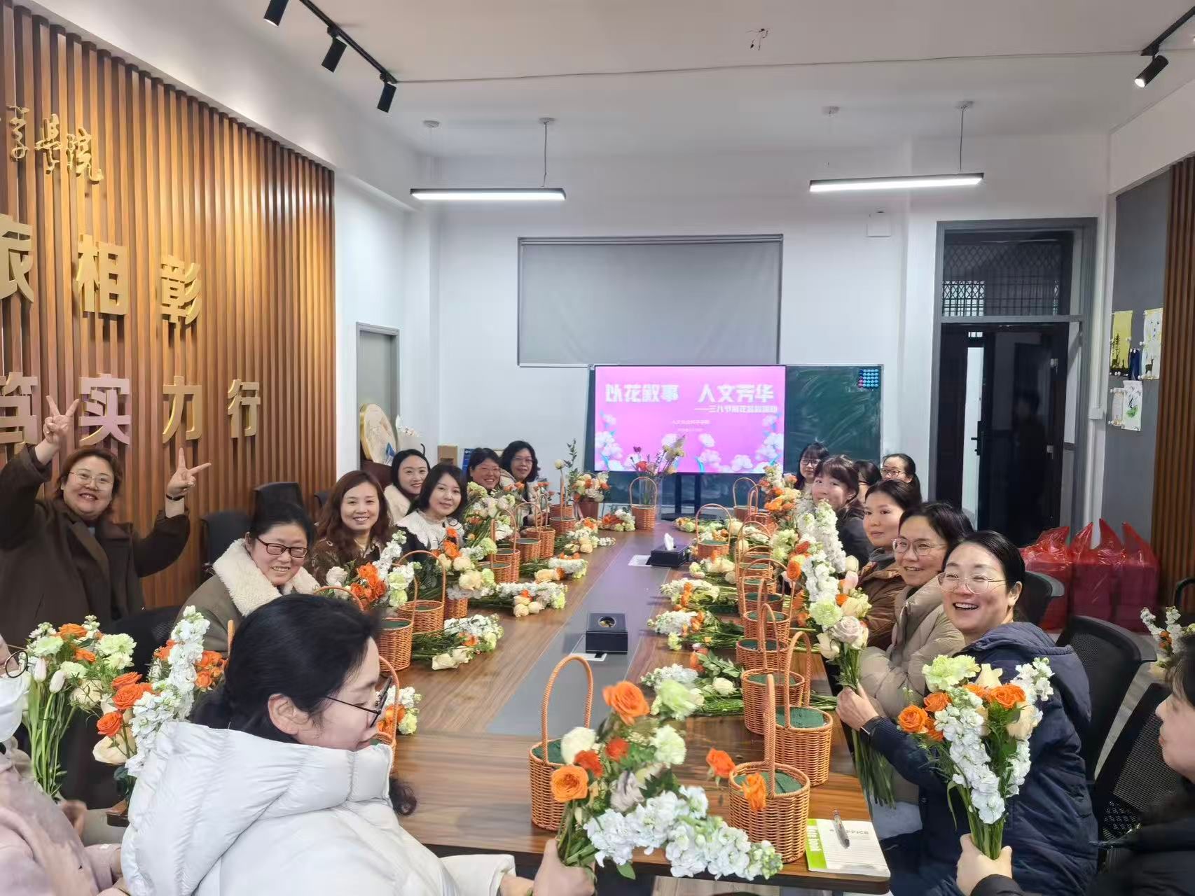 为庆祝“三八”国际劳动妇女节,丰富学院女教职工精神文化生活,营造温馨和谐的学院氛围,3月18日下午,人文学院分工会在仁和楼A302会议室开展“以花叙事,人文芳华”主题插花活动。