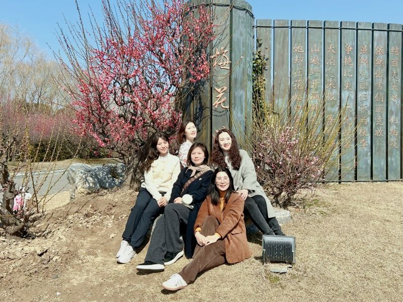 巾帼芳华,遇见“梅”好。上午,学院女教职工共赴大丰梅花湾。在这里,素净的梅花花瓣与细细的枝条在蓝天的映衬下,显得格外婀娜多姿。大家沿着梅花湾的小道漫步,一边欣赏着阳春三月万物复苏的美景,一边交流着工作和生活的点滴。副书记姚爱华表示,梅花的精神与人文学院精神契合,希望教师们将这种精神带入教学和工作中,为学院发展贡献力量。