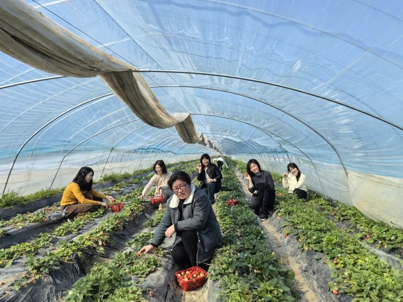 芳华如你,遇见“莓”好。在阳光明媚的午后,大家乘坐舒适的大巴车,一路欢声笑语抵达草莓园,一片翠绿和鲜红映入眼帘。草莓园里弥漫着浓郁的果香,让人忍不住想要品尝那些鲜美多汁的草莓。女教职工纷纷拿起篮子,踏入草莓田中,开始了他们的采摘之旅。大家互相交流着采摘技巧和经验,分享着彼此的快乐和收获。