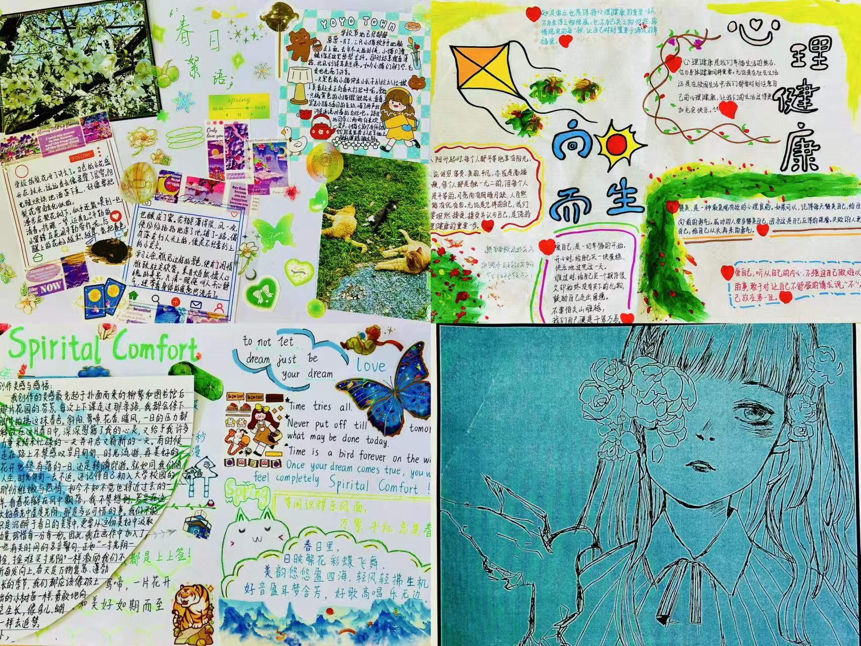 活动以艺术表达为载体,鼓励学生通过绘画释放情感、探索内心世界,共征集优秀作品近四十幅。同学们以独特的艺术视角和丰富的色彩语言,传达着各种不同的心灵之声:“面对生活的重重压力,要学会‘煎墙’,精心打磨、加固心灵防线”“遭遇自我认知偏差与焦虑情绪时,调整心态,学会自我接纳,以积极之姿笑对生活”……这些充满创意的话语,不仅展现出同学们积极向上的心理风貌,更分享了他们独到的心理调节技巧,同时传递出对陌生人的美好期许。一句句平凡却饱含深情的祝福,如同春日里的微风,在同学们的心间轻轻拂过,温暖悄然蔓延。在作品评选环节,学院从主题内容、版面设计、构思创意等多个维度进行细致考量,最终评选出一等奖8名、二等奖13名、三等奖14名,以及优秀奖若干。