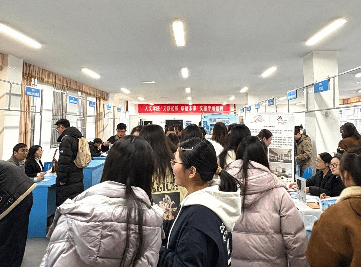 为切实做好2026届毕业生就业工作,搭建优质就业平台,11月26日下午,人文学院“文旅相彰 ‘职’就未来”2026届毕业生文旅专场招聘会,在希望大道校区大学生活动中心一楼就业市场顺利举办。人文学院党政领导、各科室负责人、毕业班辅导员以及2026届毕业生300余人参加。