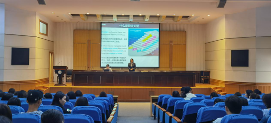 2021年5月26日下午两点,在北区图书馆报告厅,江阴黄嘉喜来登酒店人力资源总监包彩霞女士、前厅部经理蒋晓春先生应邀走进人文讲坛,为人文学院师生做职业规划专题报告。人文学院党总支副书记何登溢主持会议,新生辅导员刘高、大一大二学生共200余人参加会议。