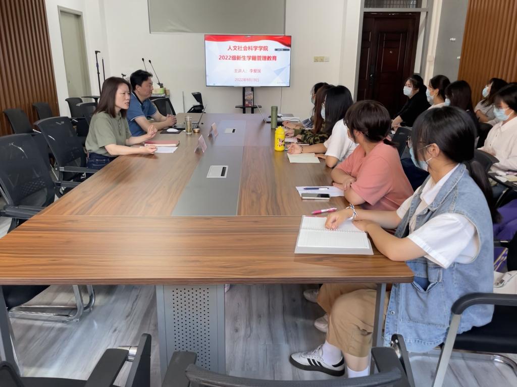 9月18日下午,在希望大道校区仁和楼A302会议室,人文学院邀请学校教务处副处长李爱国为2022级新生作学籍管理教育讲座。人文学院党总支副书记姚爱华主持,新生辅导员及全体2022级新生参加。按照疫情防控要求,本次讲座采用线上线下相结合的方式开展。