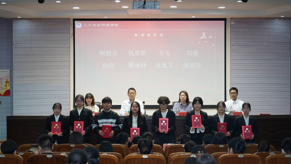大会在雄壮的国歌声中开始。首先由姚爱华宣读《人文社会科学学院关于表彰2021/2022 学年优秀学生干部、优秀志愿者的决定》和《人文社会科学学院第二十一届学团干部聘任名单》。随后,举行了优秀学生干部、优秀志愿者表彰仪式和第二十一届学团干部聘任仪式。