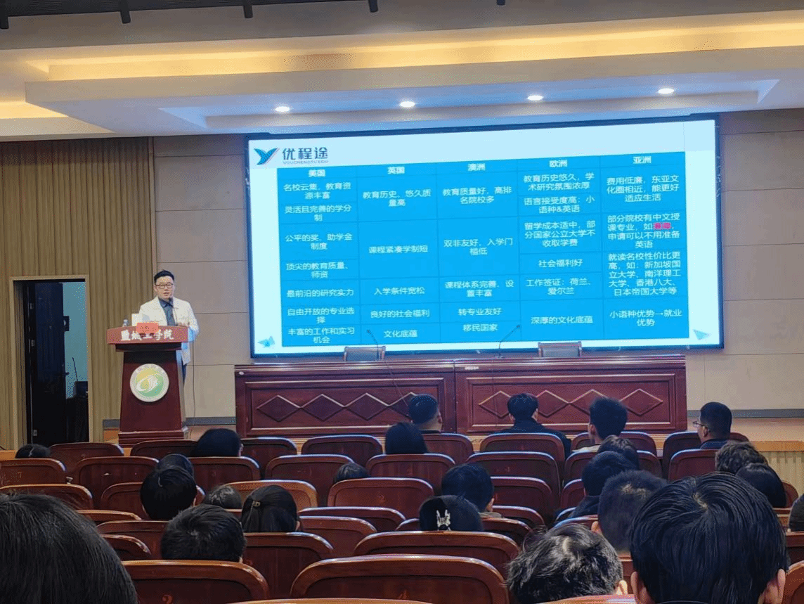 为进一步提高人才培养质量,促进学生多元化发展,帮助学生更好地了解境外申硕相关事宜,人文学院于3月27日晚在南校区机械馆报告厅举办境外申硕辅导专题讲座。盐城先行教育科技有限公司翁孜恺老师应邀主讲,学院党总支书记何登溢、专兼职辅导员、毕业班在校生及部分大三学生参加。讲座由学院党总支副书记姚爱华主持。