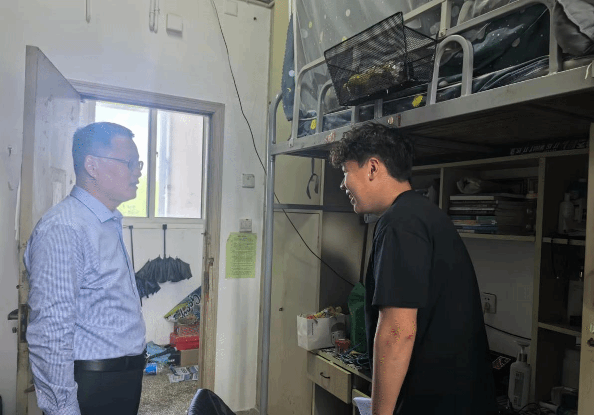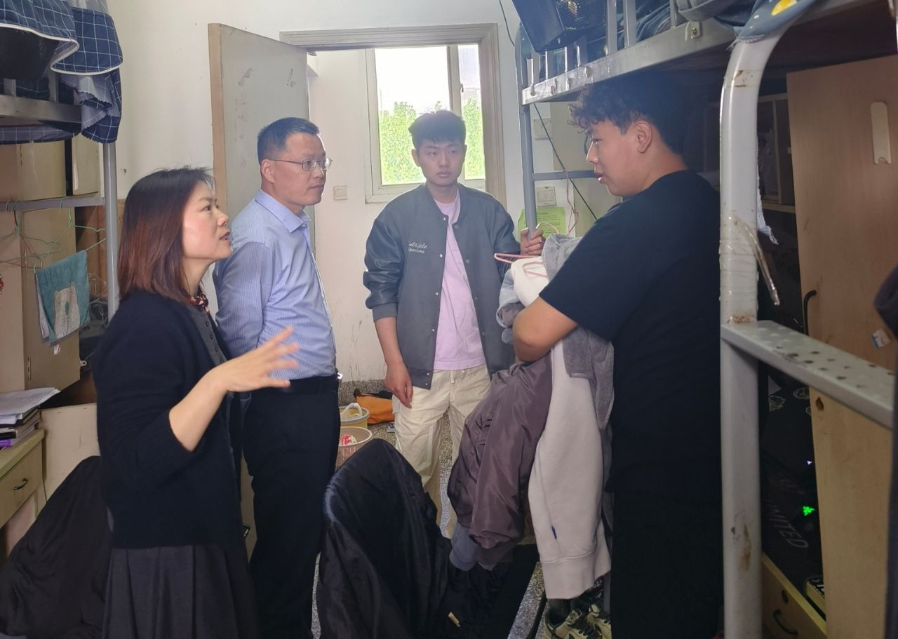 走访期间,何登溢与学生亲切交谈,主动了解学生的学习、生活情况,询问学生的毕业去向和就业单位落实情况,他鼓励学生要树立正确的就业观和择业观,调整好求职心态和期望值,同时强调要自觉遵守宿舍管理制度,整理好宿舍内务,严守宿舍安全底线。姚爱华耐心听取学生在求职中遇到的困难和需求,积极为就业困难学生提供有针对性的就业信息和帮扶,鼓励毕业生积极参加校内外举办的各类招聘会、在网络求职平台多投简历、大胆尝试。毕业班辅导员也对毕业生的毕业论文进展、职业资格证考试、就业见习过程中遇到的困境进行纾解和答疑。