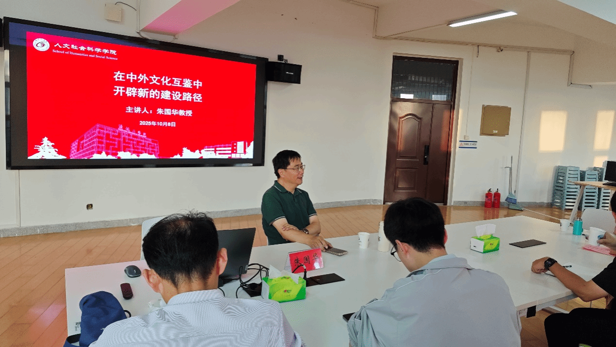 10月8日下午,仁和楼C407气氛热烈。华东师范大学博士生导师、教育部“长江学者”特聘教授朱国华应邀莅临人文学院,以《在中外文化互鉴中开辟新的建设路径》为题,为国际中文教育学科建设提供专题指导。人文学院院长周晓燕主持。国际中文教育专硕点部分导师、青年博士及2025级全体6位研究生参加交流活动。