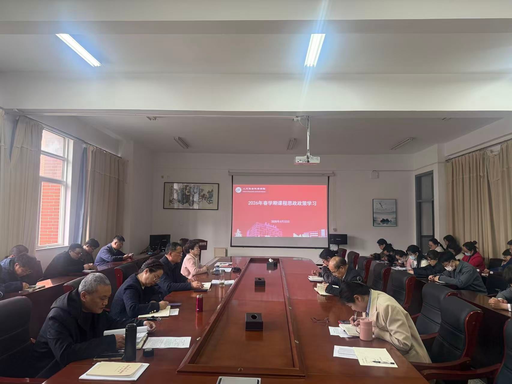 为深入贯彻落实立德树人根本任务,全面推进课程思政高质量建设,切实提升专业课程育人实效,2026年4月15日,人文学院在仁和楼A304会议室开展课程思政文件专题学习会。会议由院长周晓燕主持,学院全体教职工参加。