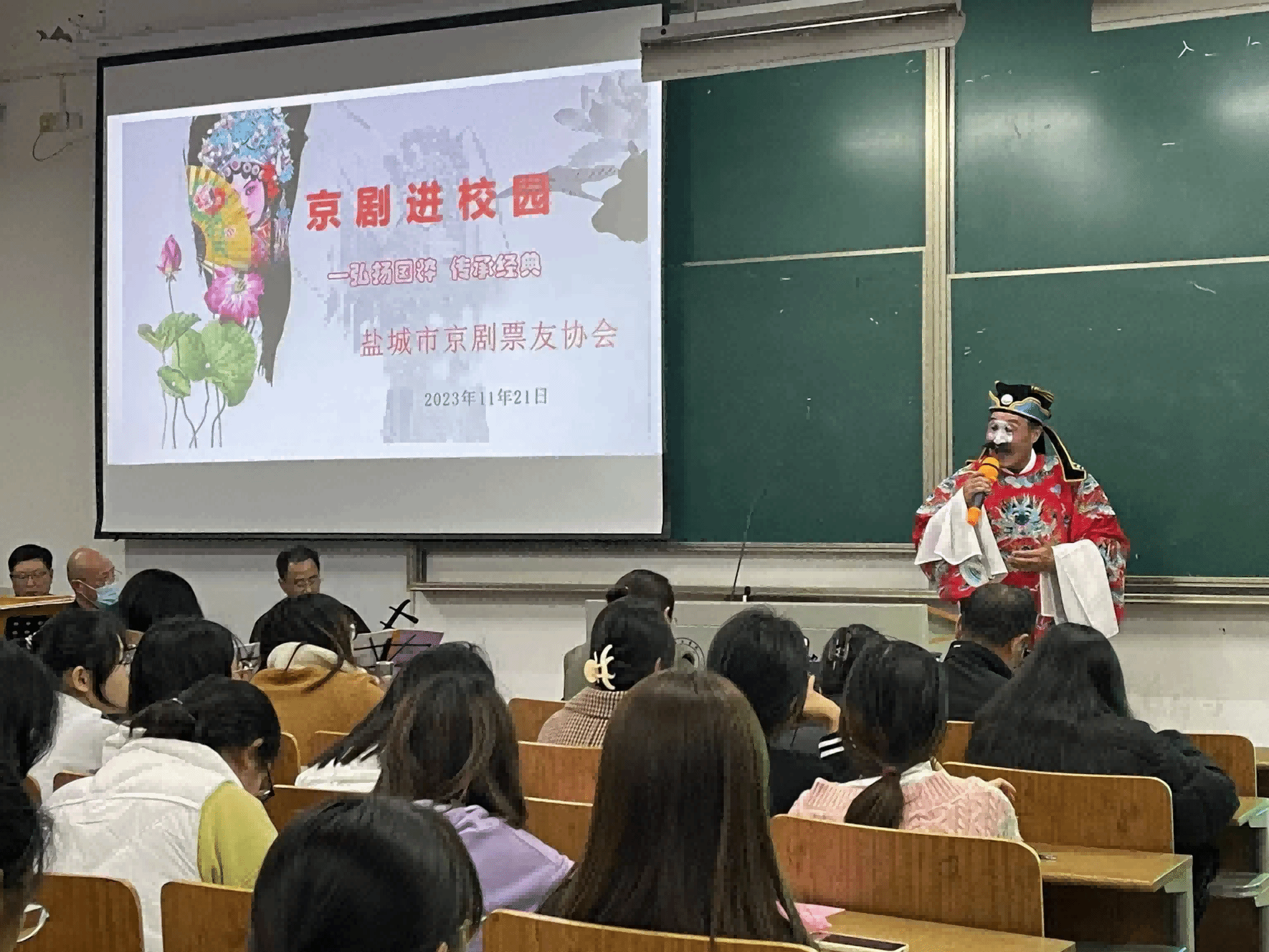 为了更好地了解和感受中华文化的魅力,可以近距离地欣赏到京剧的表演艺术,感受到京剧的独特韵味和深厚内涵。11月21日,人文学院在博学楼C401邀请盐城京剧校友协会深入人文课堂进行交流演出。
