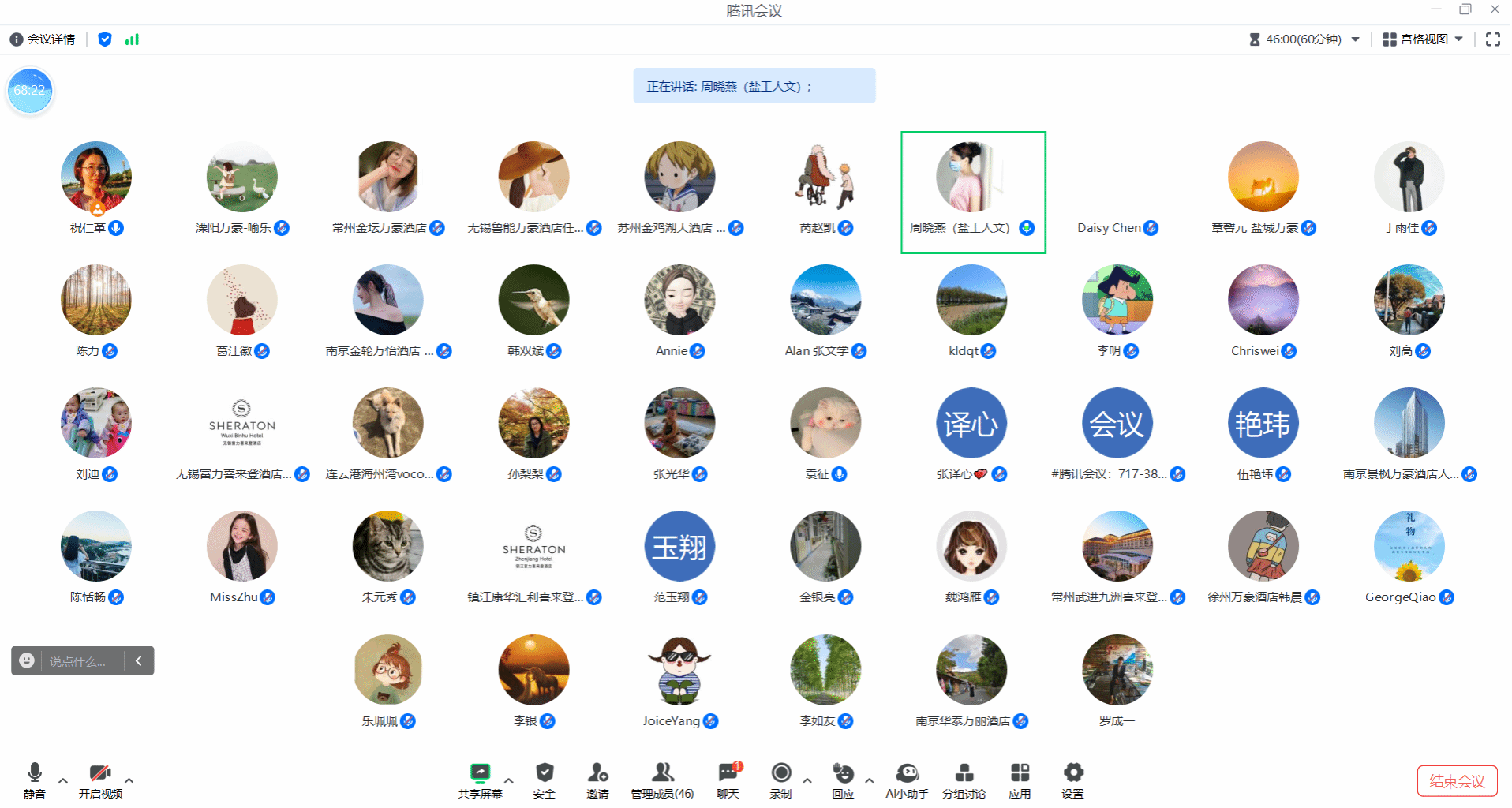 8月16日上午10点,人文学院在腾讯会议平台上成功举行了“人文学院预就业暑期推进活动1:合作酒店行业导师专项交流会”。院长周晓燕、21家高星级酒店行业导师、人文学院旅游系、酒店系全体教师参加此次会议,会议由酒店系主任祝仁革博士主持,旨在加强学院与酒店行业的联系,共同探讨和推进学生的实习与就业工作。