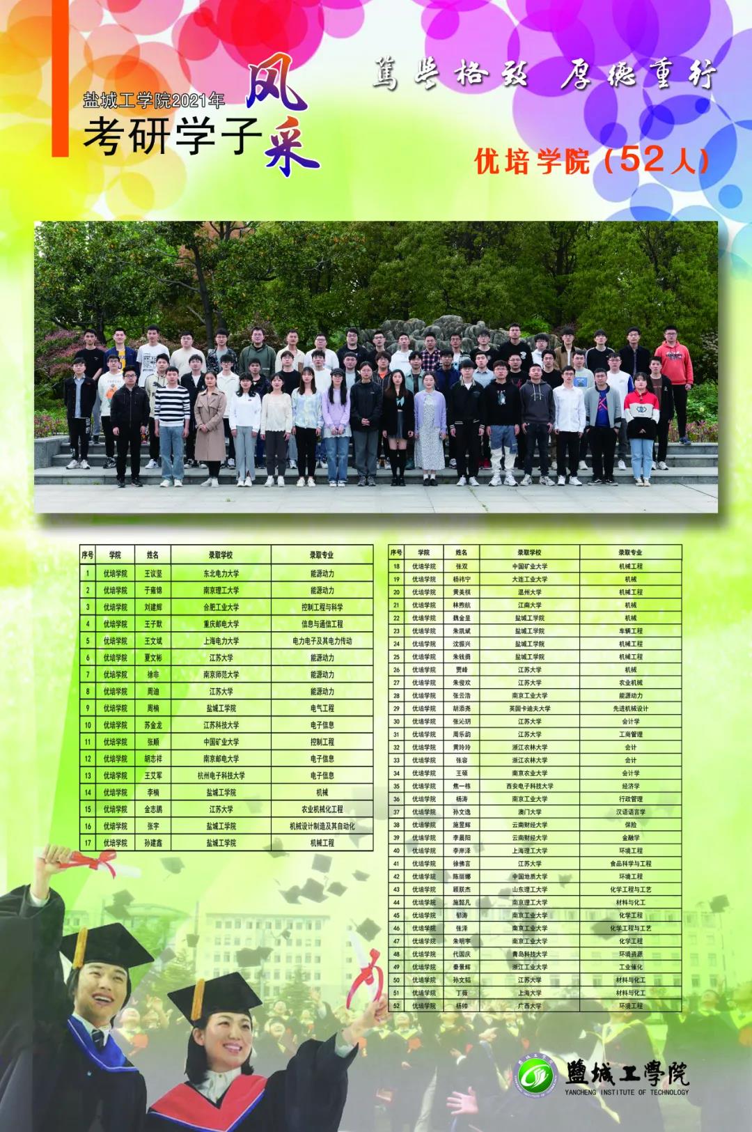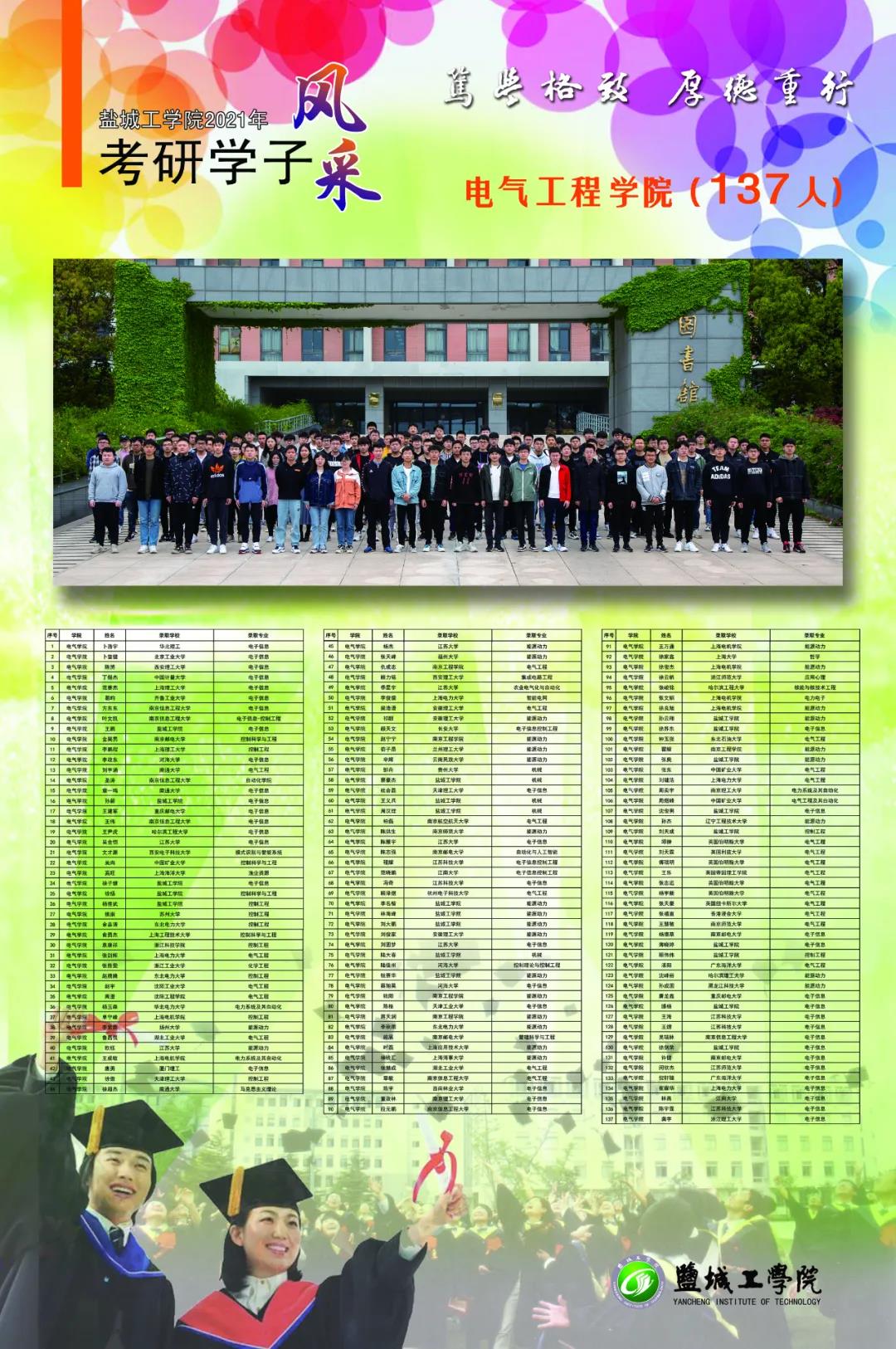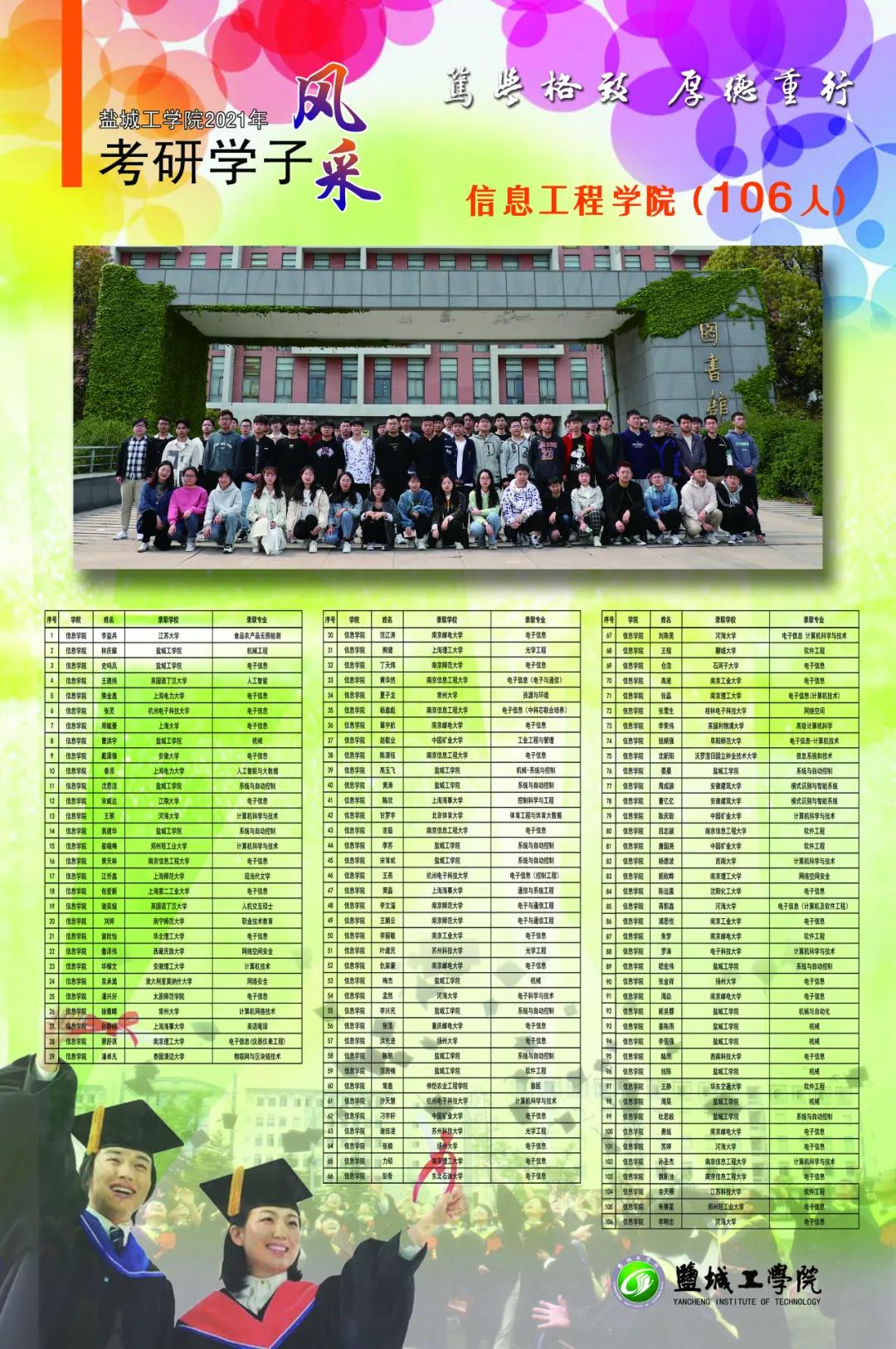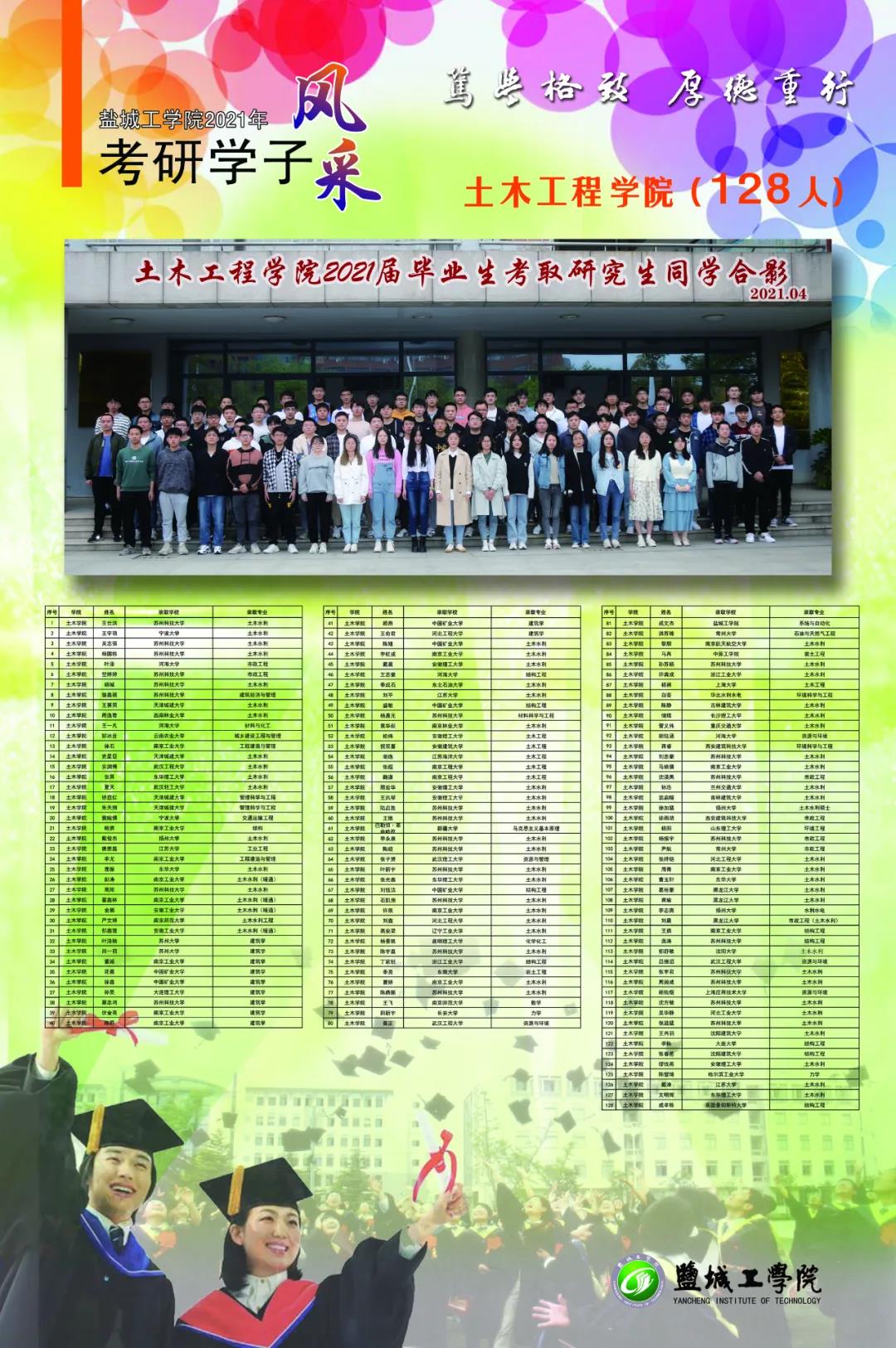 截至6月12日统计,我校应届毕业生中有1232人分别被哈尔滨工业大学、东南大学、香港中文大学、英国爱丁堡大学等国内外知名高校硕士研究生录取,考研录取率超25%。考研成功人数和考研录取率再创新高。