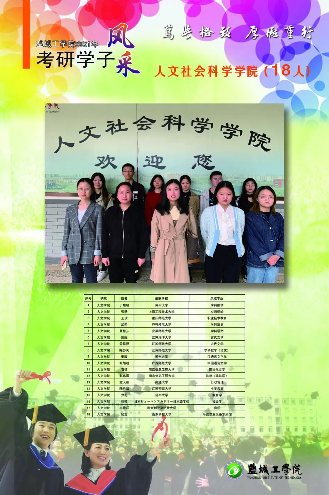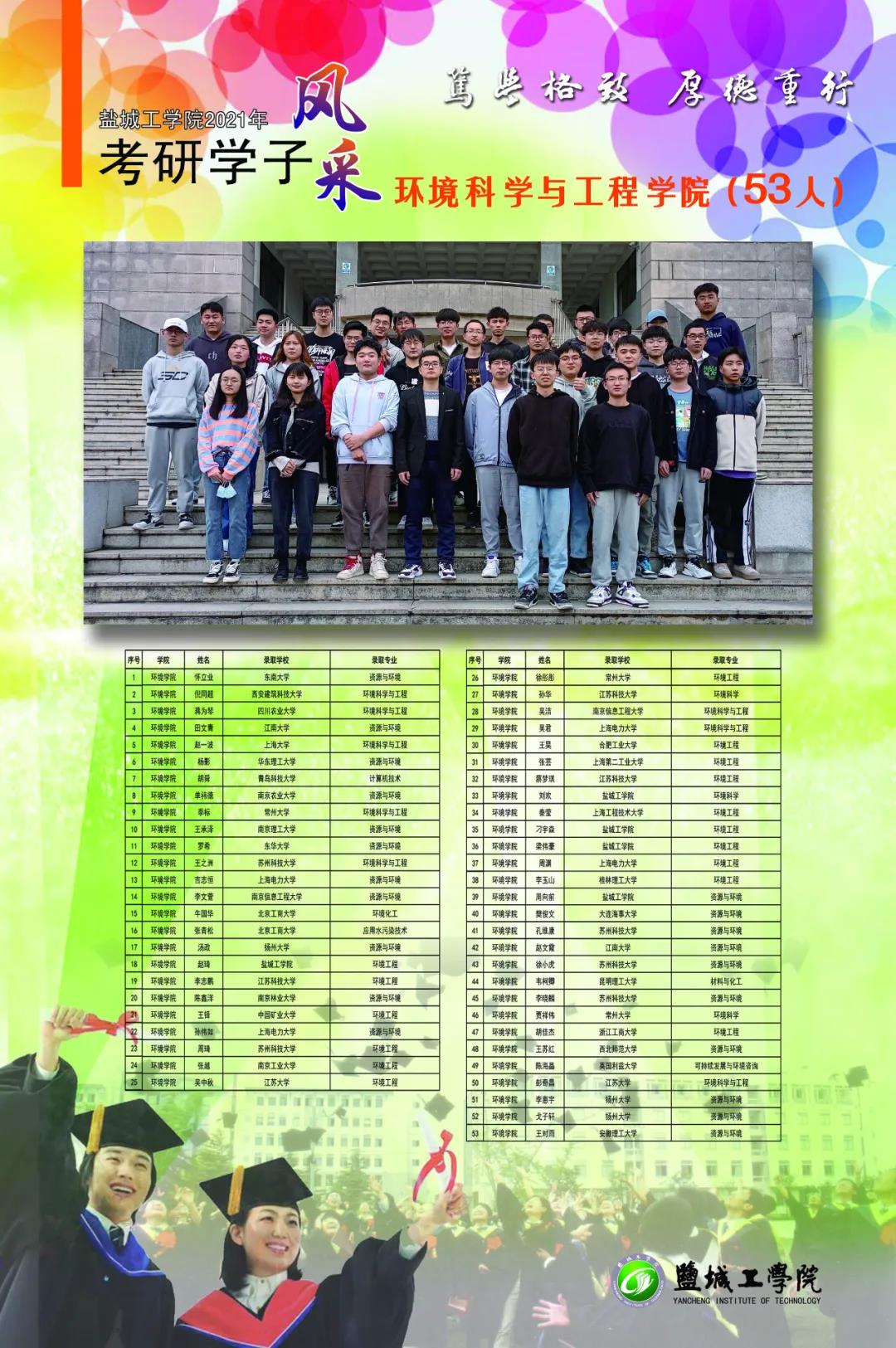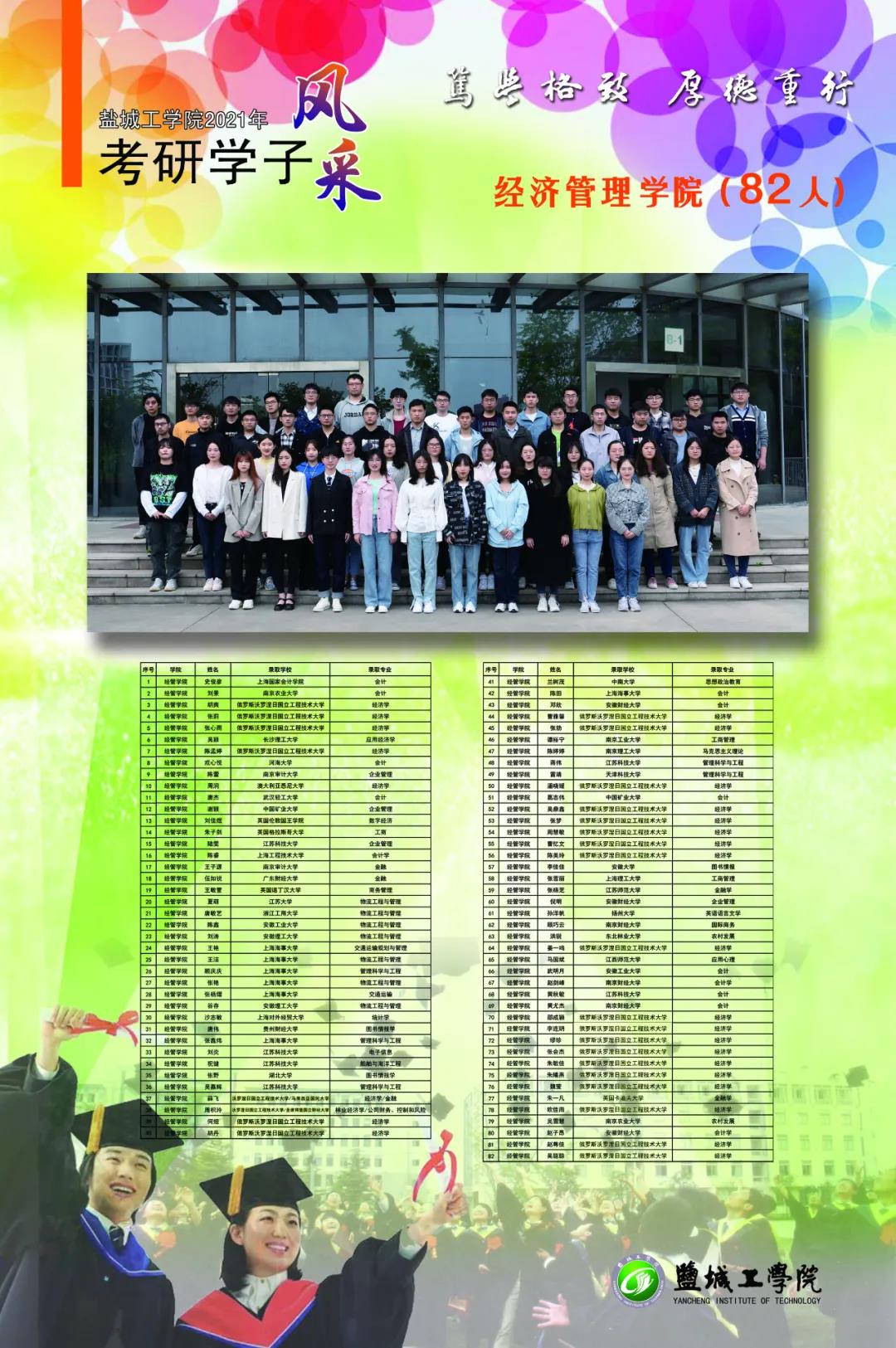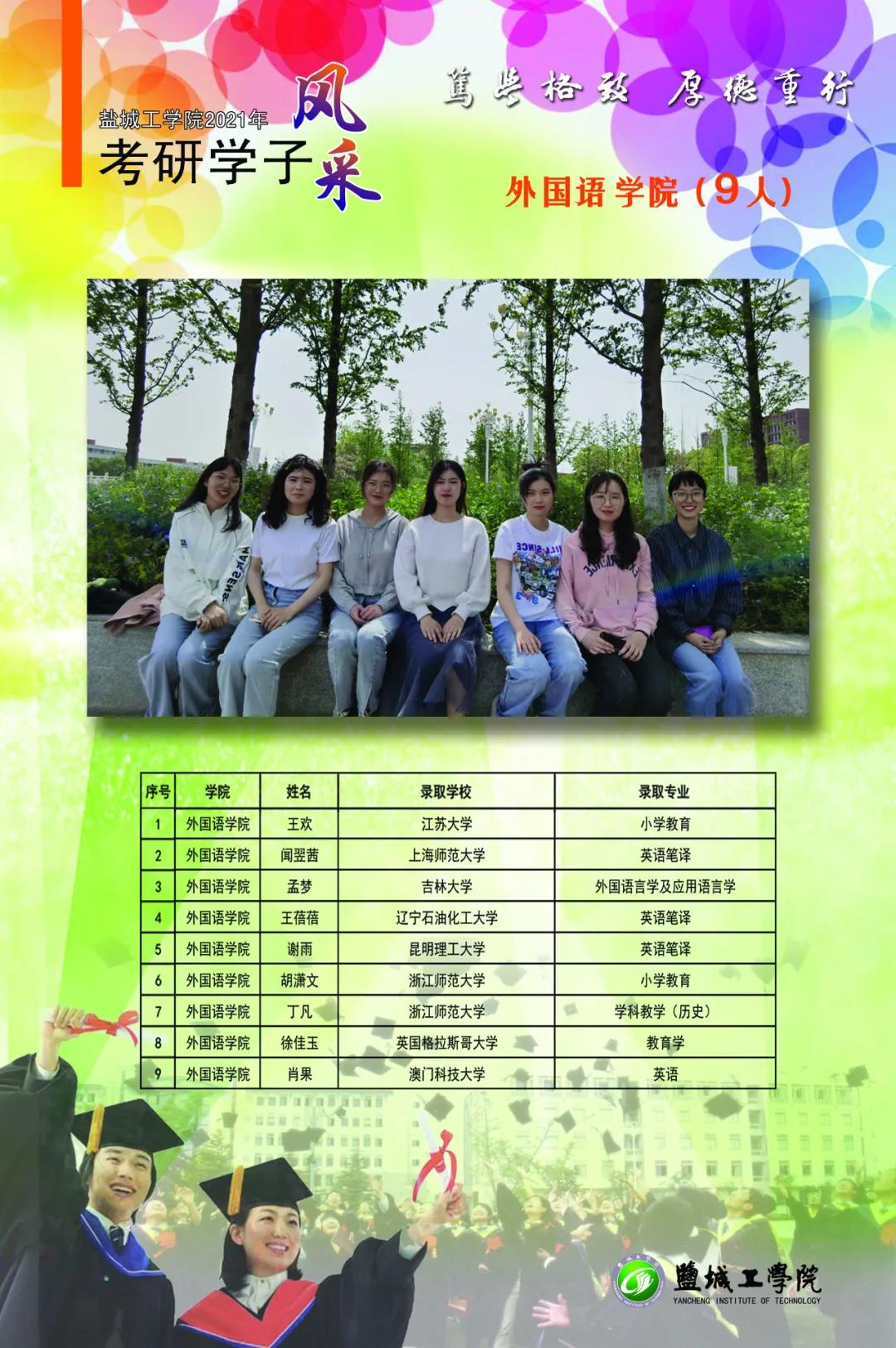 截至6月12日统计,我校应届毕业生中有1232人分别被哈尔滨工业大学、东南大学、香港中文大学、英国爱丁堡大学等国内外知名高校硕士研究生录取,考研录取率超25%。考研成功人数和考研录取率再创新高。