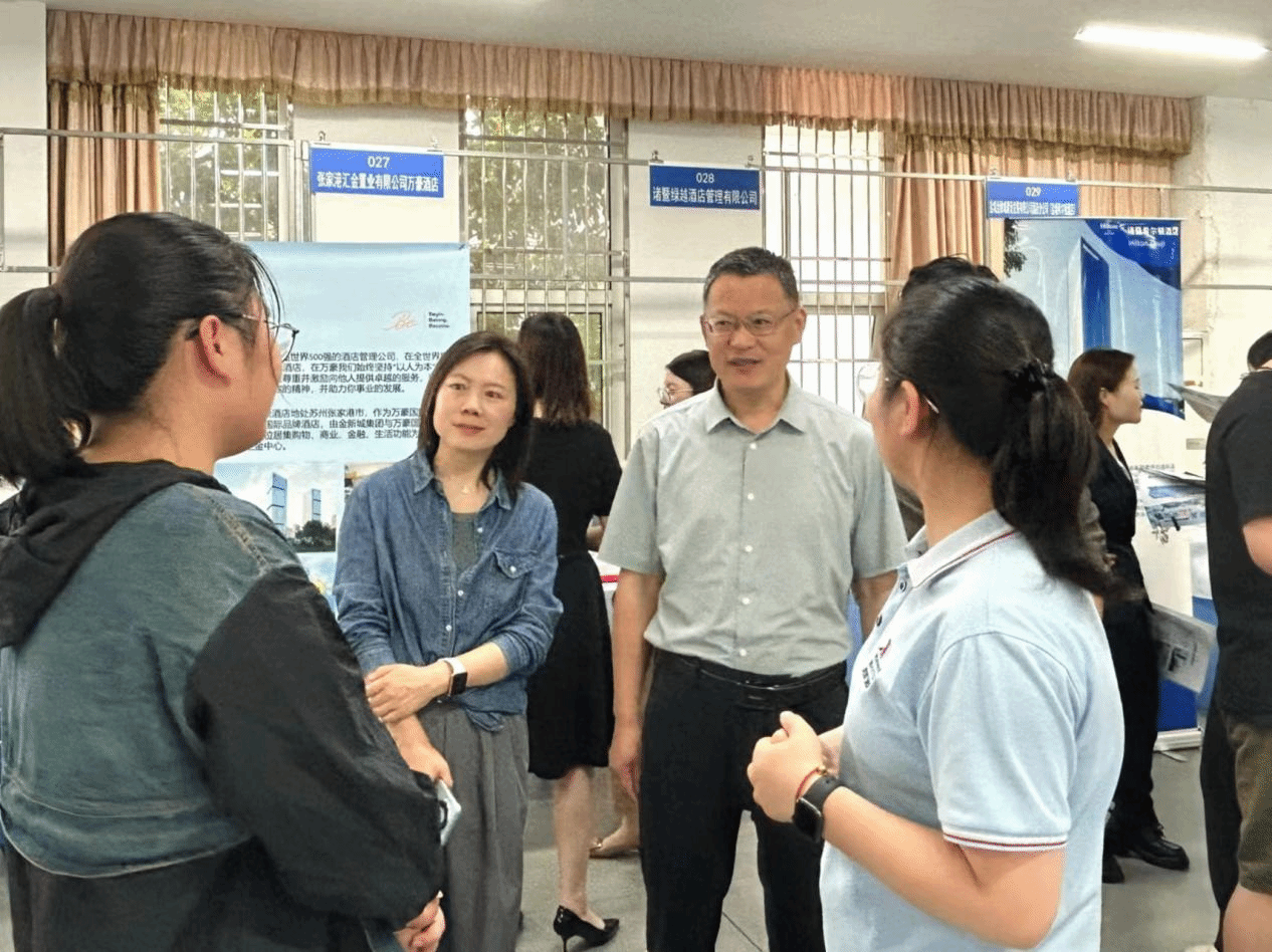 本次招聘会共有29家文旅行业的知名企业参会,其中包括万豪、希尔顿、凯悦、华住等享誉国内外的酒店集团以及建湖旅游发展有限公司、盐城先行教育科技有限公司、江苏凡造文化传媒有限公司等诸多优质的文旅企业,累计提供300余个就业岗位。招聘会现场氛围热烈,2024届应届毕业生积极参与求职应聘,主动向用人单位了解职业发展前景、工作环境、岗位职责、职业晋升通道等信息,充分展现自身的专业能力和综合素养,并积极提交简历。与此同时还有很多非毕业班的学生,主动向用人单位了解行业前沿发展动态、能力要求,对照企业用人需求做好职业生涯规划,提早谋划未来职业发展方向。