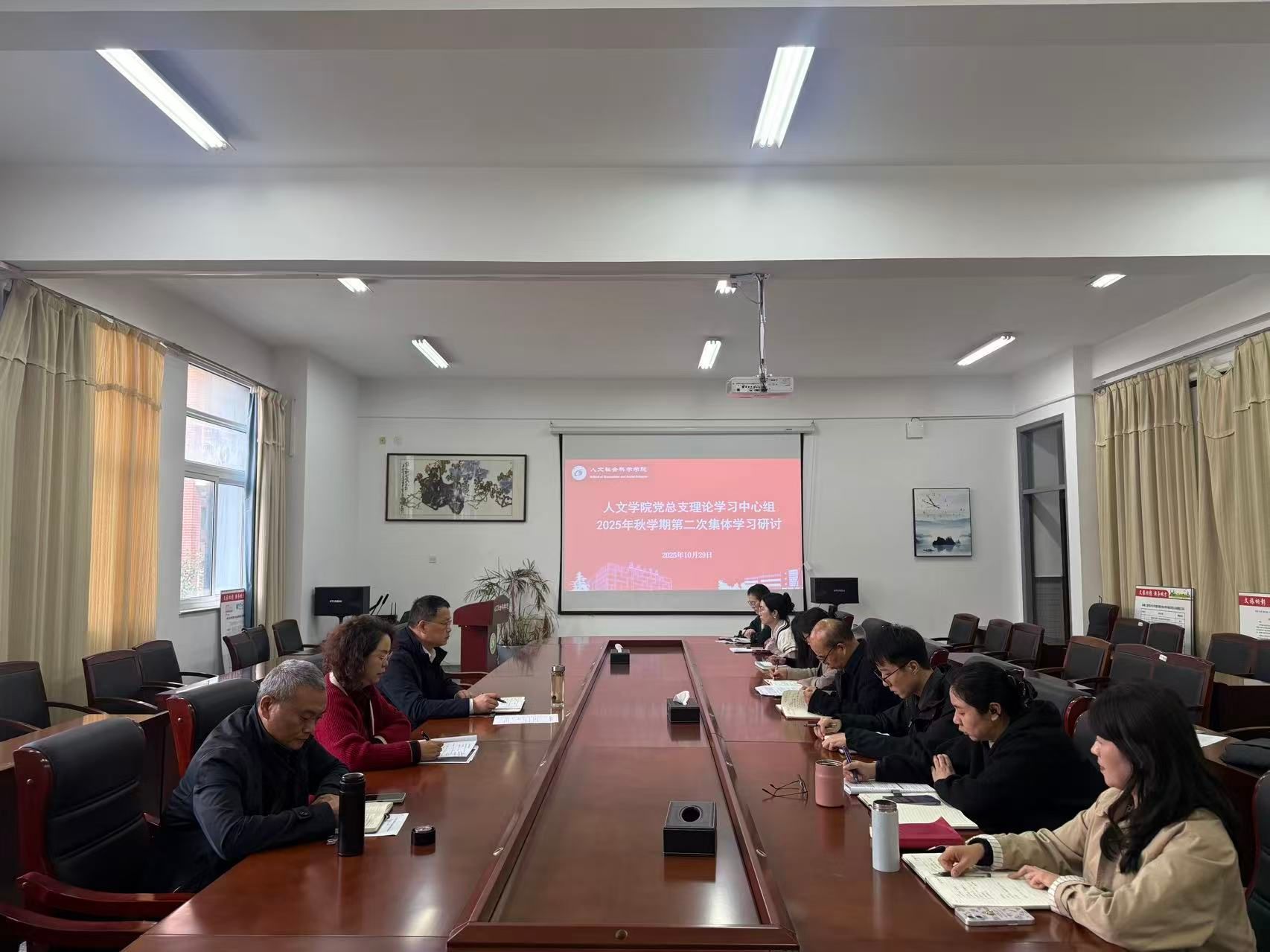 10月29日下午,在仁和楼A304会议室,人文学院党总支理论学习中心组召开2025年秋学期第二次集体学习研讨会。会议由学院党总支书记何登溢主持,学院党总支理论学习中心组成员参加。
