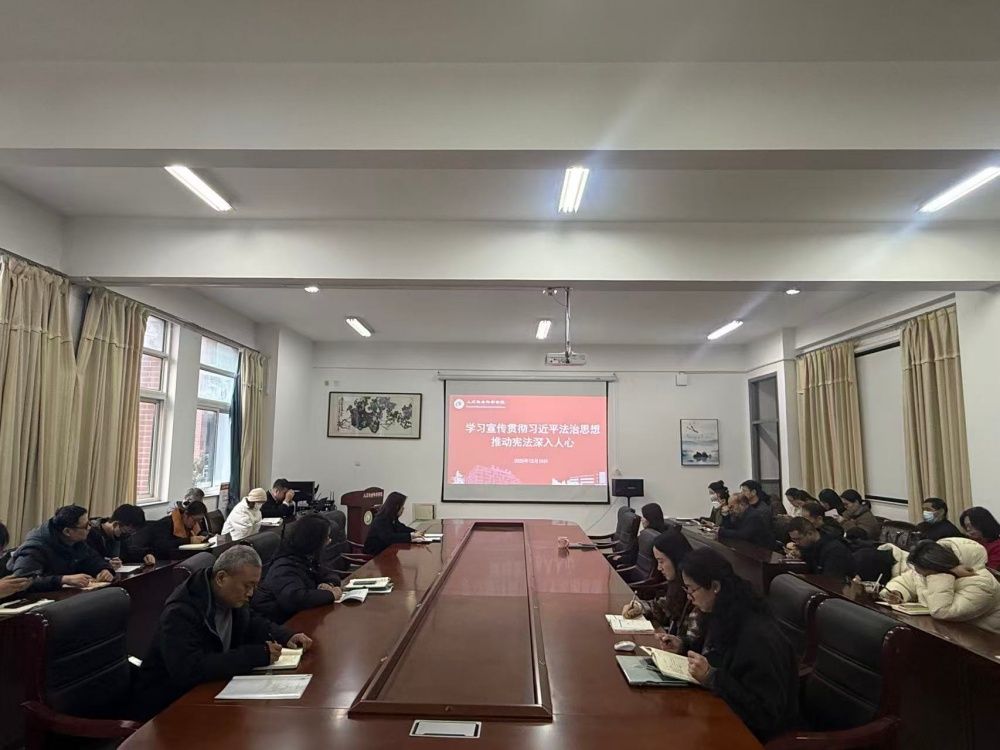 为大力弘扬宪法精神,传播宪法理念,12月10日下午,人文学院在仁和楼A304会议室组织开展“宪法宣传周”专题学习活动。活动由学院党总支副书记姚爱华主持,学院教职工参加。