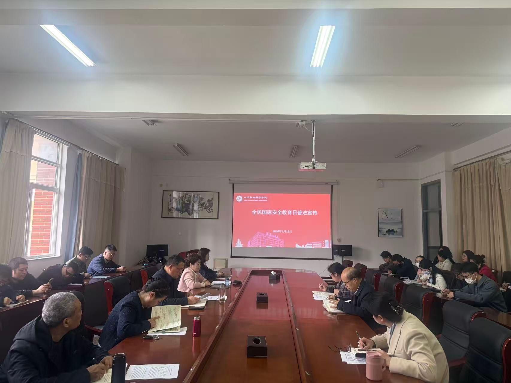 4月15日下午,人文学院在南校区仁和楼A304会议室组织开展2026年全民国家安全教育日普法宣传活动。会议由学院党总支书记何登溢主持,全体教职工参加。