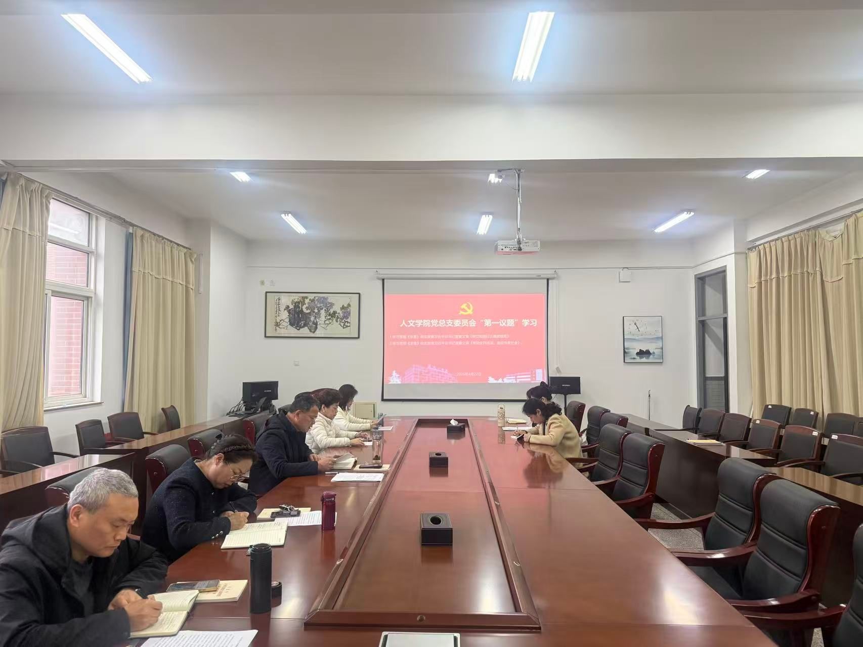 4月22日下午,在仁和楼A304会议室,人文学院党总支委员会以“第一议题”学习习近平总书记近期重要文章精神。会议由学院党总支书记何登溢主持,党总支委员会委员参加,学术助理邢千里和专业系主任列席会议。