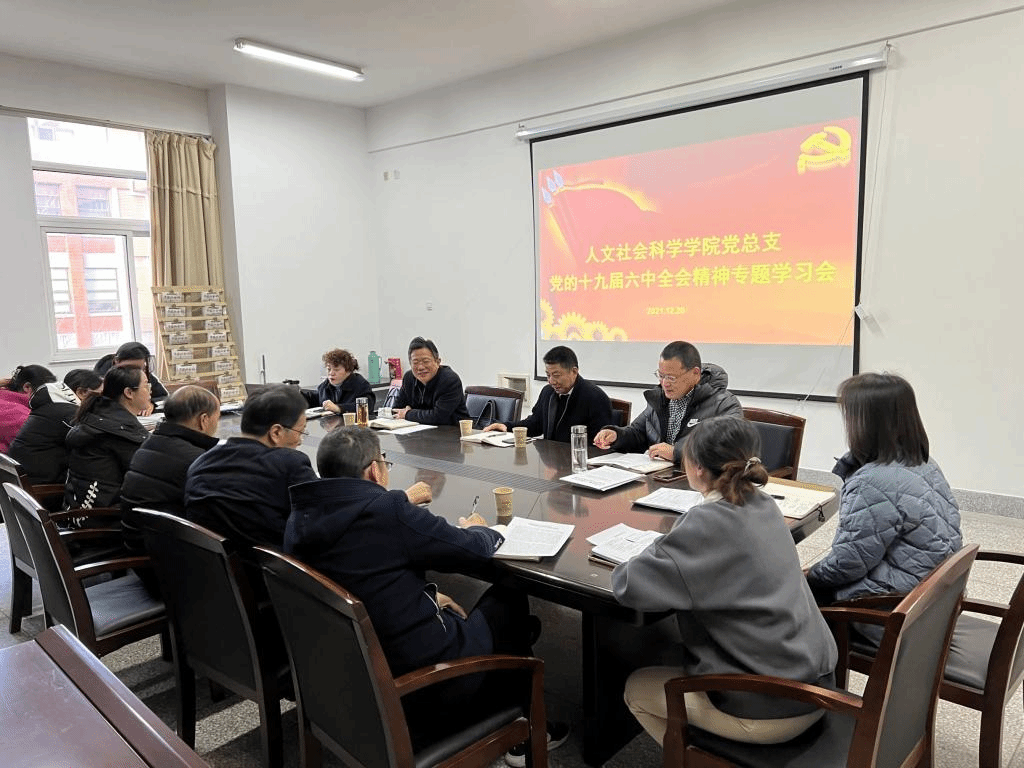 12月20日下午,人文社会科学学院党总支理论学习中心组在南校区仁和楼A304会议室举行十九届六中全会精神学习研讨会。会议由院党总支书记何登溢主持,中心组全体成员参加学习研讨。