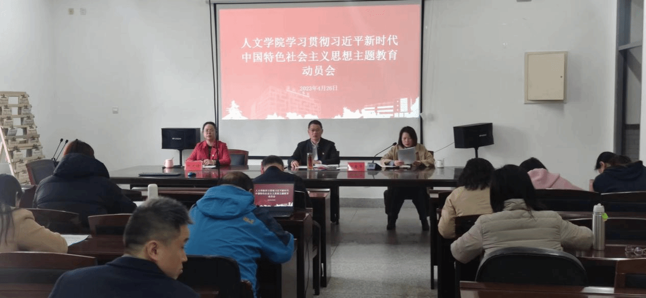 4月26日下午,在仁和楼A304会议室,人文学院召开学习贯彻习近平新时代中国特色社会主义思想主题教育动员会。会议由学院党总支书记何登溢主持,人文学院全体教职工参加。