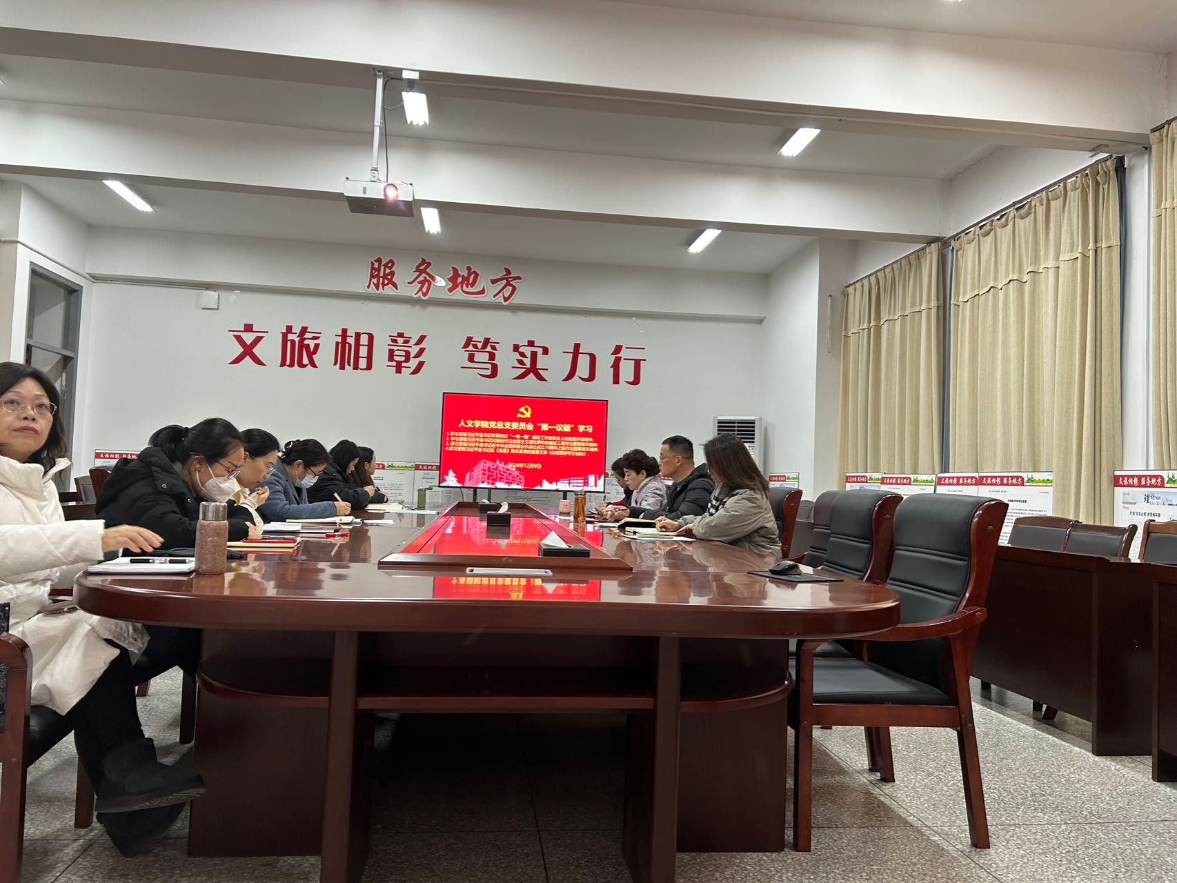 12月9日上午,在仁和楼A304会议室,人文学院党总支委员会以“第一议题”学习习近平总书记在第四次“一带一路”建设工作座谈会上发表的重要讲话精神、对新时代马克思主义理论研究和建设工程作出的重要指示精神、在中华全国供销合作总社成立70周年之际作出的重要指示精神、在《求是》杂志发表的重要文章《必须坚持守正创新》精神。会议由学院党总支书记何登溢主持,党总支委员会委员及中心组成员参加。