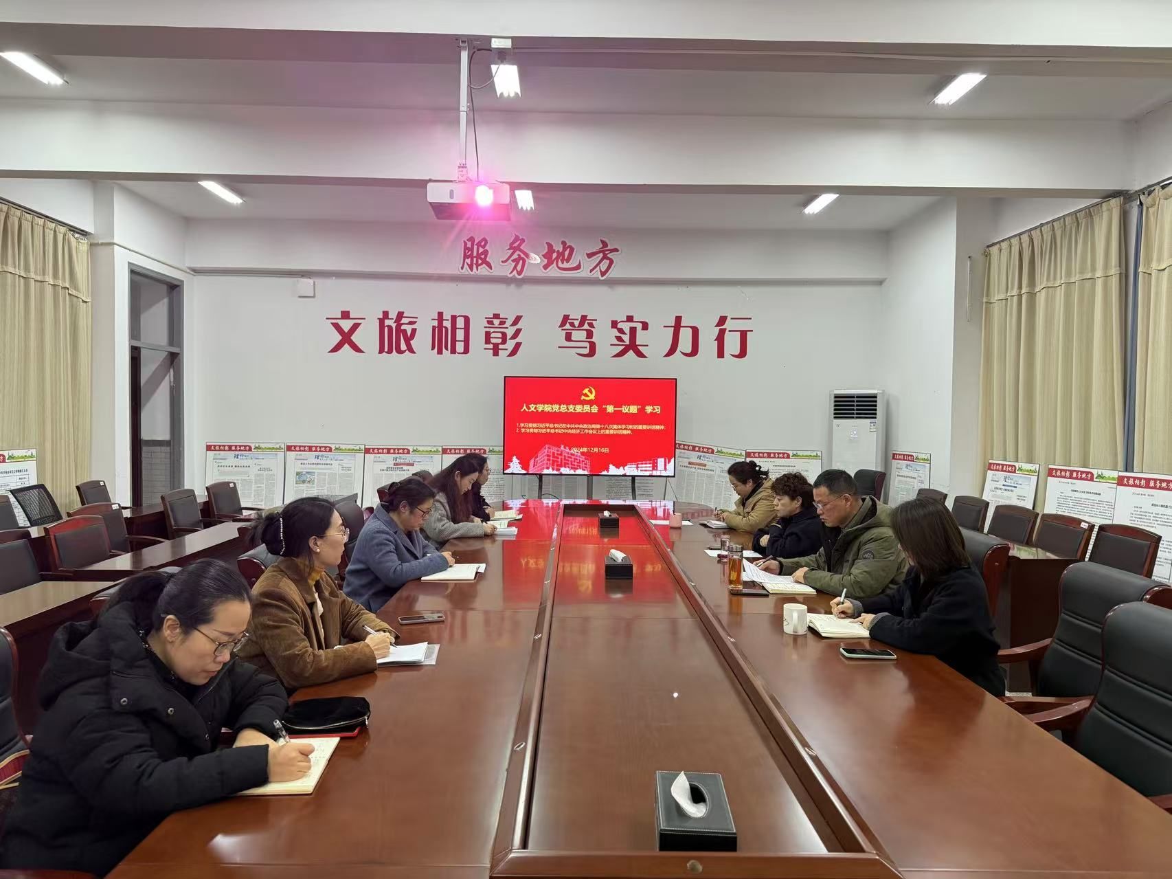 12月16日上午,在仁和楼A304会议室,人文学院党总支委员会以“第一议题”学习习近平总书记在中央经济工作会议上的重要讲话精神、在中共中央政治局第十八次集体学习时的重要讲话精神。会议由学院党总支书记何登溢主持,党总支委员会委员及中心组成员参加。