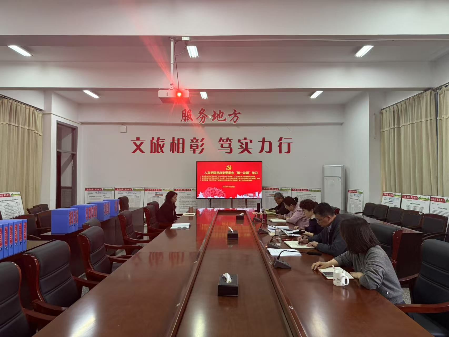 5月6日上午,在仁和楼A304会议室,人文学院党总支委员会以“第一议题”学习习近平总书记在中央政治局第二十次集体学习时的重要讲话精神、在《求是》杂志发表的重要文章《加快建设文化强国》精神和原文领学《习近平关于加强党的作风建设论述摘编》(以下简称《摘编》)的第七个专题。会议由学院党总支书记何登溢主持,党总支委员会委员参加。