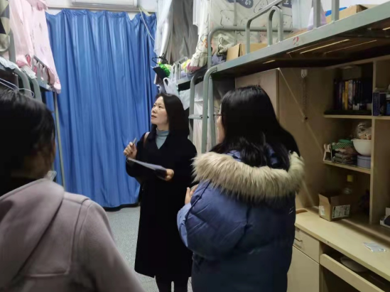 姚爱华带领政工人员对学生宿舍的安全卫生情况进行了检查,要求同学们按照校纪校规做好日常卫生和安全工作。期间,她与宿管人员进行了深入交流,了解学生的日常表现和卫生状况。姚爱华代表学院对宿管人员进行了慰问,感谢他们一直以来关心学生、爱护学生,是学生温暖的陪伴者。