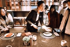 会后,学生们参观了酒店的各个部门并体验了西餐厅摆盘、客房铺床等活动。学生们通过此次活动,不仅了解了国际酒店品牌的企业文化,提高了学生对酒店职业的期待感,而且有助于促进学生的个人职业生涯规划,缓解学生的焦虑感,强化自身的专业认同。